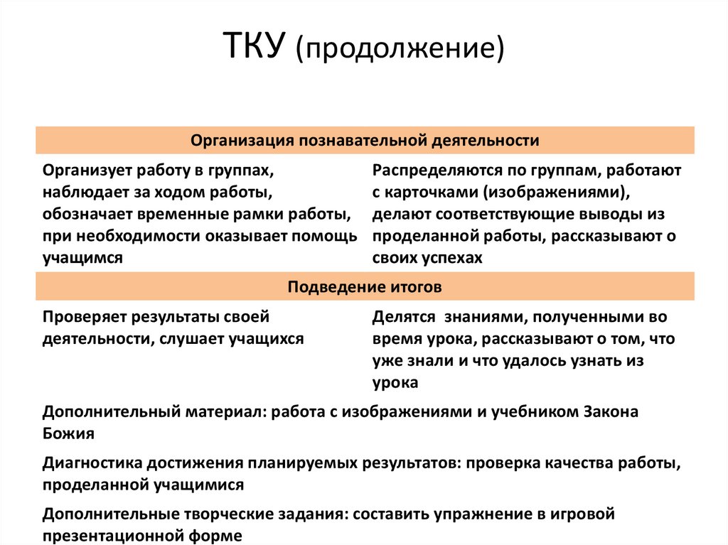 ТКУ (продолжение)Организация познавательной деятельности