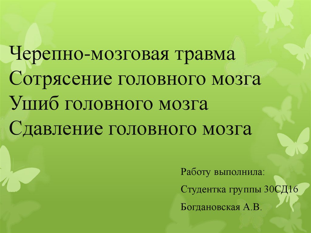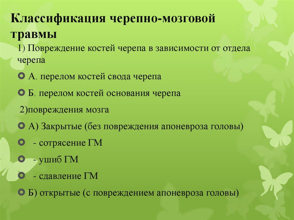 Черепно-мозговые травмы. Виды ЧМТ. Лечение