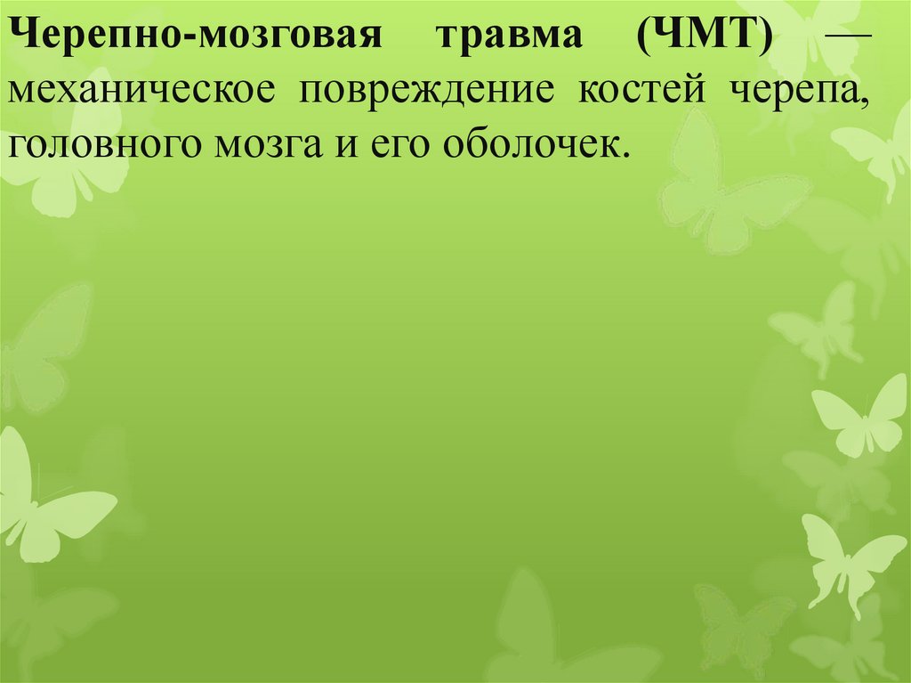 Черепно-мозговая травма (ЧМТ) —механическое повреждение костей черепа,