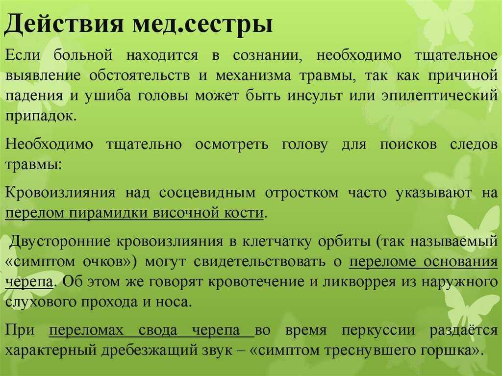 черепа. Об этом же говорят кровотечение и ликворрея из наружного