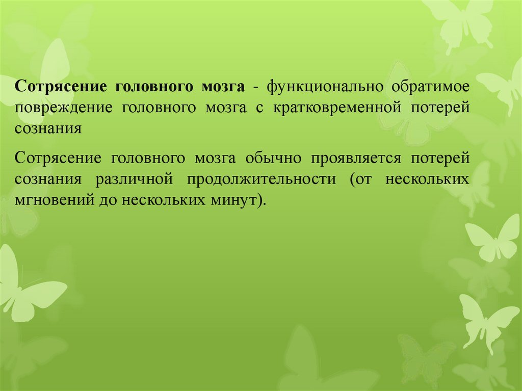 Сотрясение головного мозга - функционально обратимоеповреждение головного мозга с кратковременной потерей