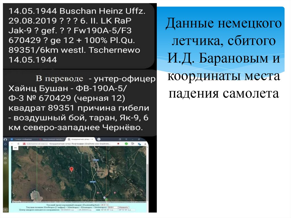 Данные немецкоголетчика, сбитого