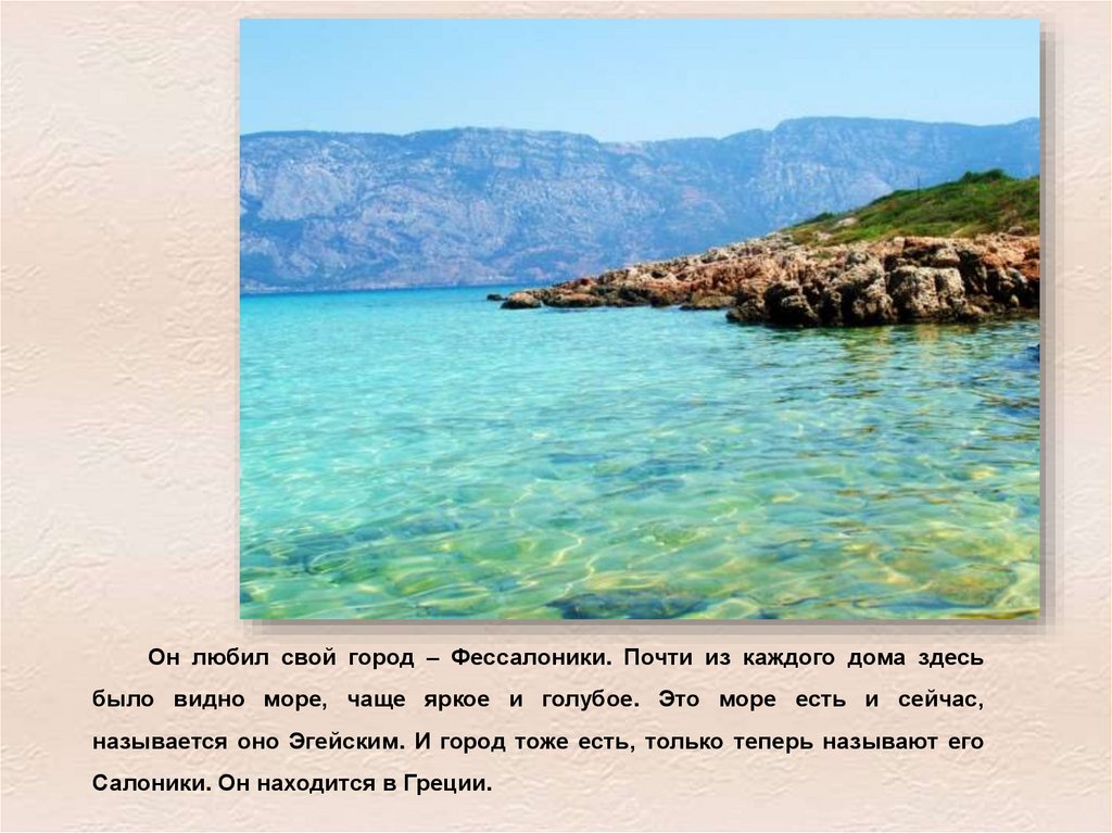 Он любил свой город – Фессалоники. Почти из каждого дома здесьбыло видно море, чаще яркое и голубое. Это море есть и сейчас,