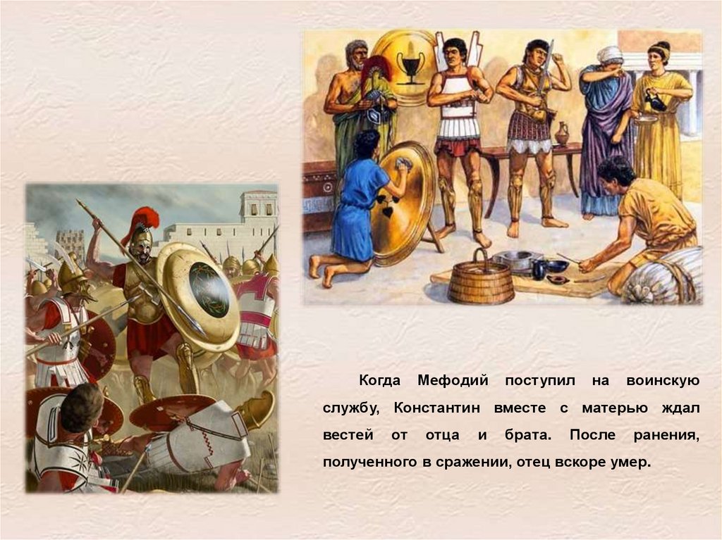 Старший брат Мефодий прославился в битвах, он возглавлял