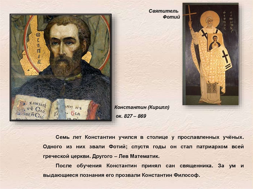 выдающиеся познания его прозвали Константин Философ.
