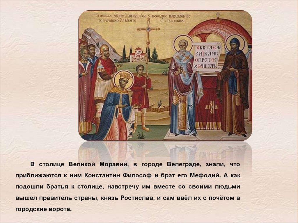 В столице Великой Моравии, в городе Велеграде, знали, чтоприближаются к ним Константин Философ и брат его Мефодий. А как