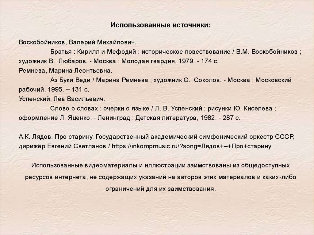Использованные источники:Воскобойников, Валерий Михайлович.