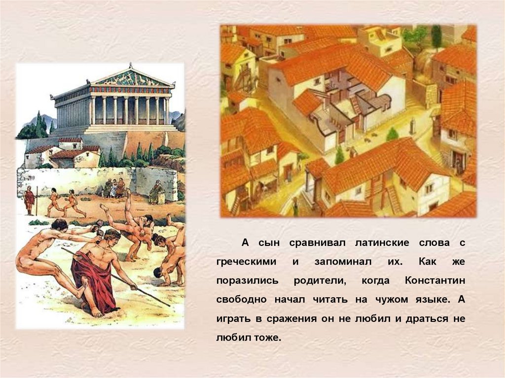 А сын сравнивал латинские слова сгреческими