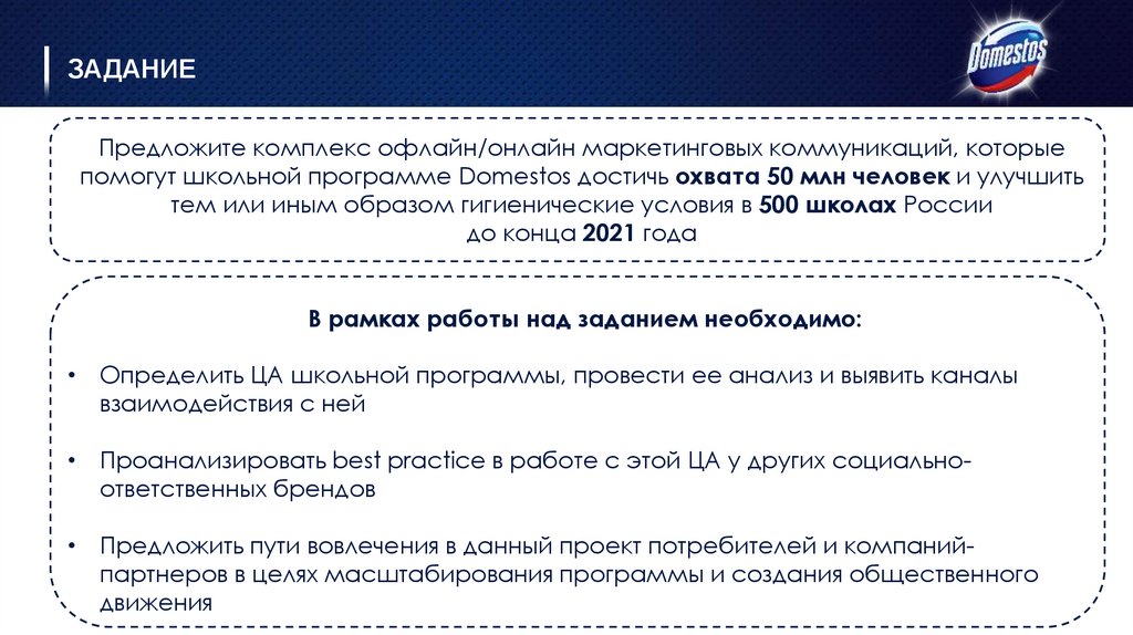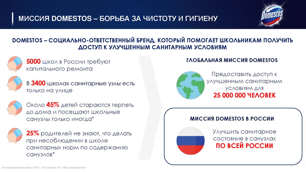 МИССИЯ DOMESTOS – БОРЬБА ЗА ЧИСТОТУ И ГИГИЕНУDOMESTOS – СОЦИАЛЬНО-ОТВЕТСТВЕННЫЙ БРЕНД, КОТОРЫЙ ПОМОГАЕТ ШКОЛЬНИКАМ ПОЛУЧИТЬ