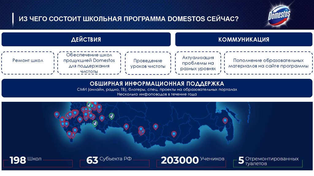 ИЗ ЧЕГО СОСТОИТ ШКОЛЬНАЯ ПРОГРАММА DOMESTOS СЕЙЧАС?ДЕЙСТВИЯ