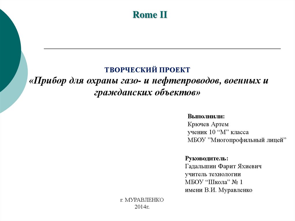 Rome IIТВОРЧЕСКИЙ ПРОЕКТ