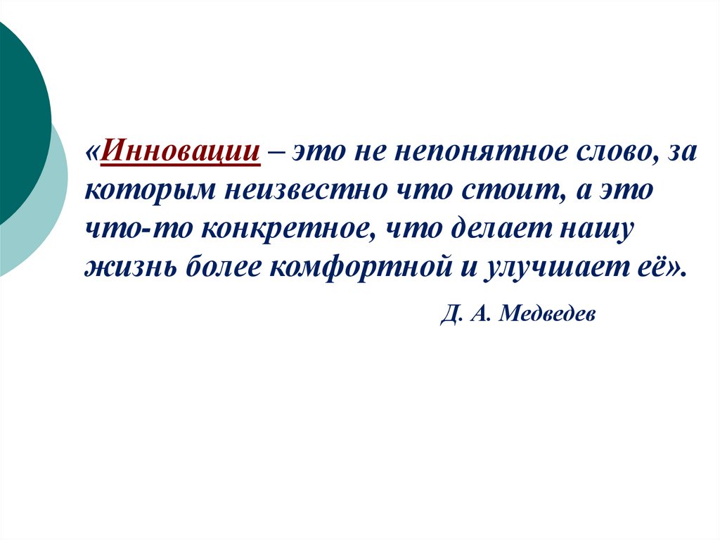 «Инновации – это не непонятное слово, закоторым неизвестно что стоит, а это