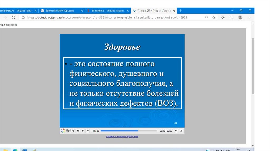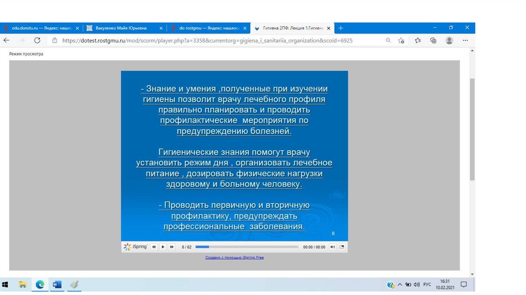 окружающей среды и реакцию организма, и пользуется знаниями и