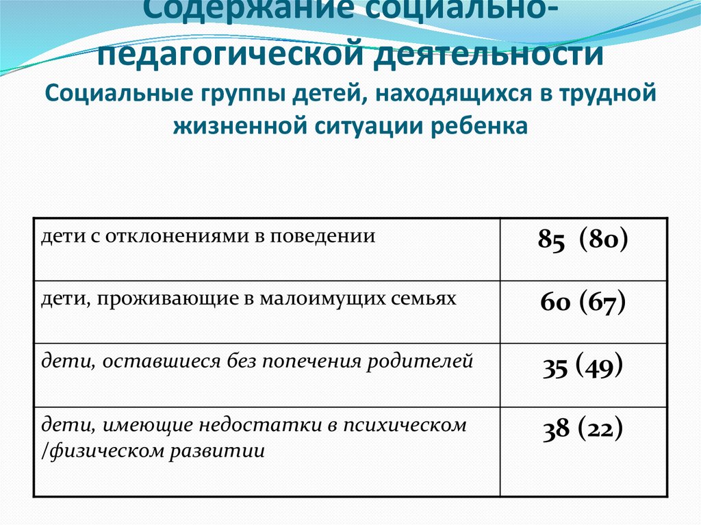 Содержание социальнопедагогической деятельностиСоциальные группы детей, находящихся в трудной
