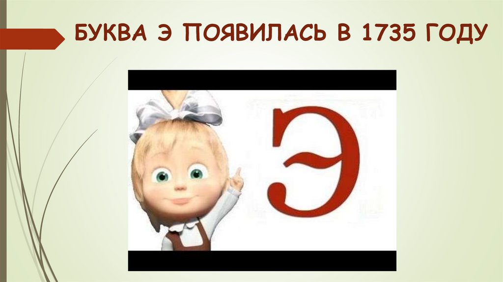 БУКВА Э ПОЯВИЛАСЬ В 1735 ГОДУ17.
