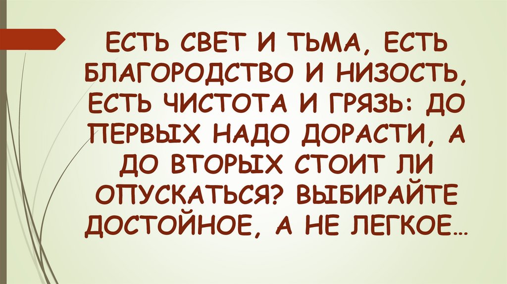 ЕСТЬ СВЕТ И ТЬМА, ЕСТЬБЛАГОРОДСТВО И НИЗОСТЬ,