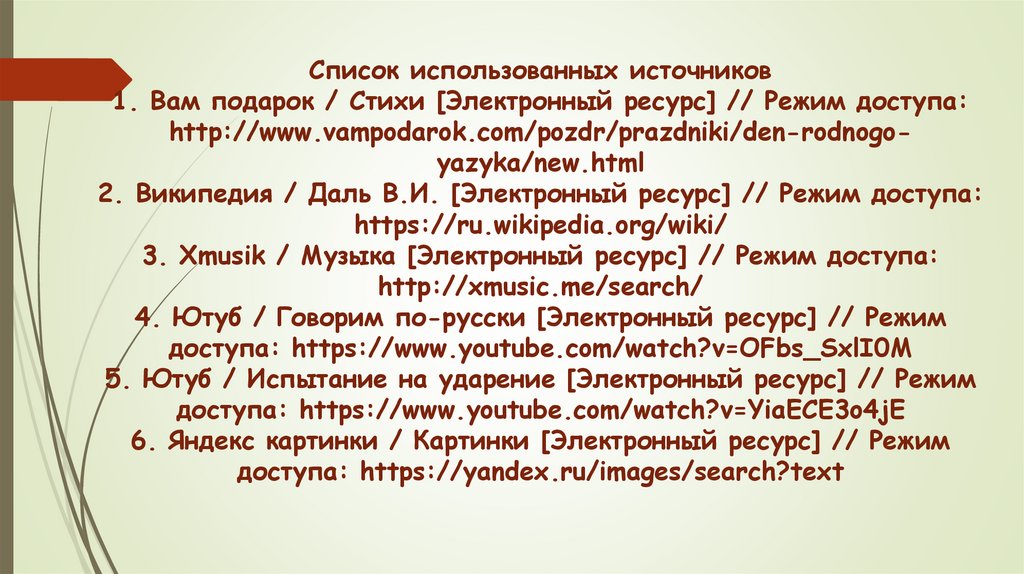 Список использованных источников1. Вам подарок / Стихи [Электронный ресурс] // Режим доступа: