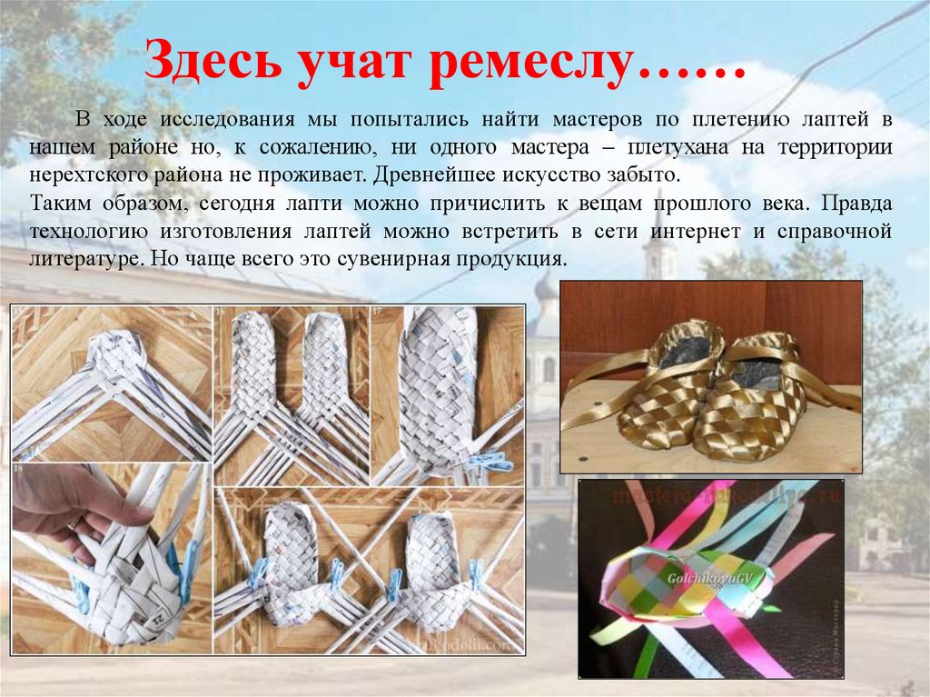 Здесь учат ремеслу……В ходе исследования мы попытались найти мастеров по плетению лаптей в