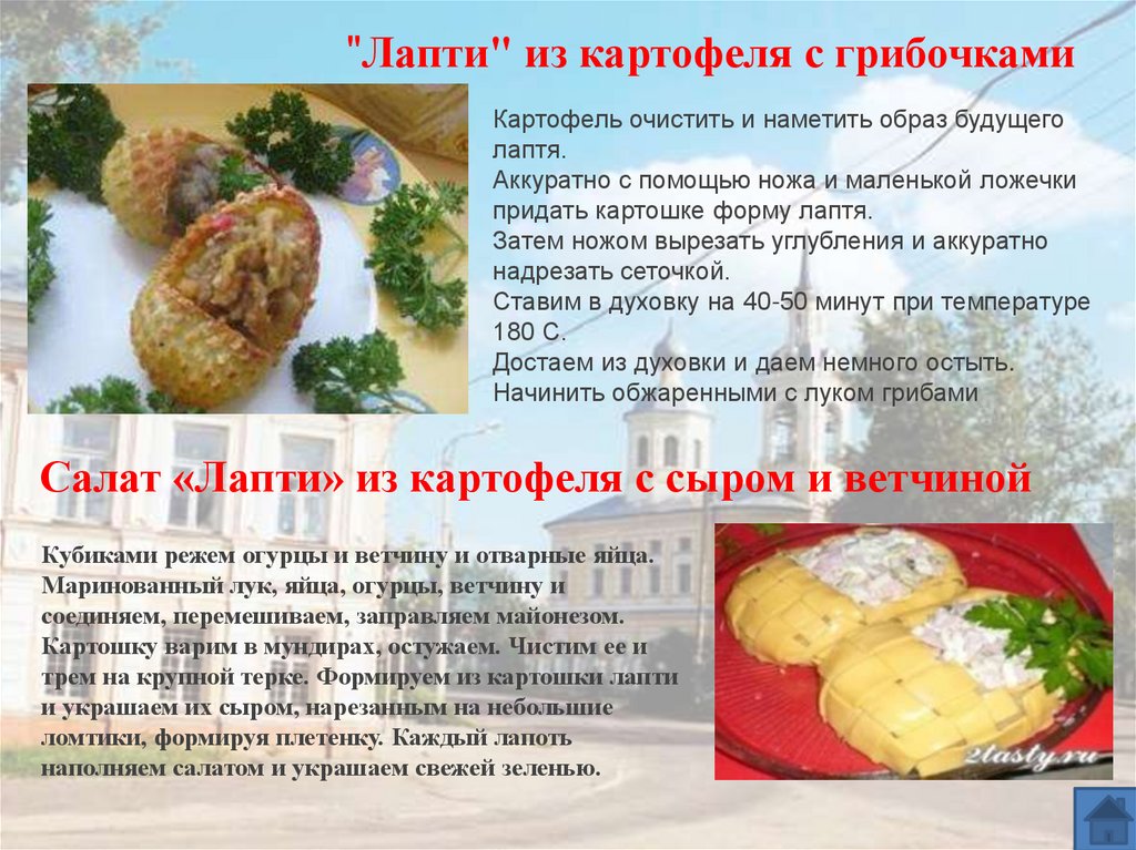 Салат «Лапти» из картофеля с сыром и ветчиной