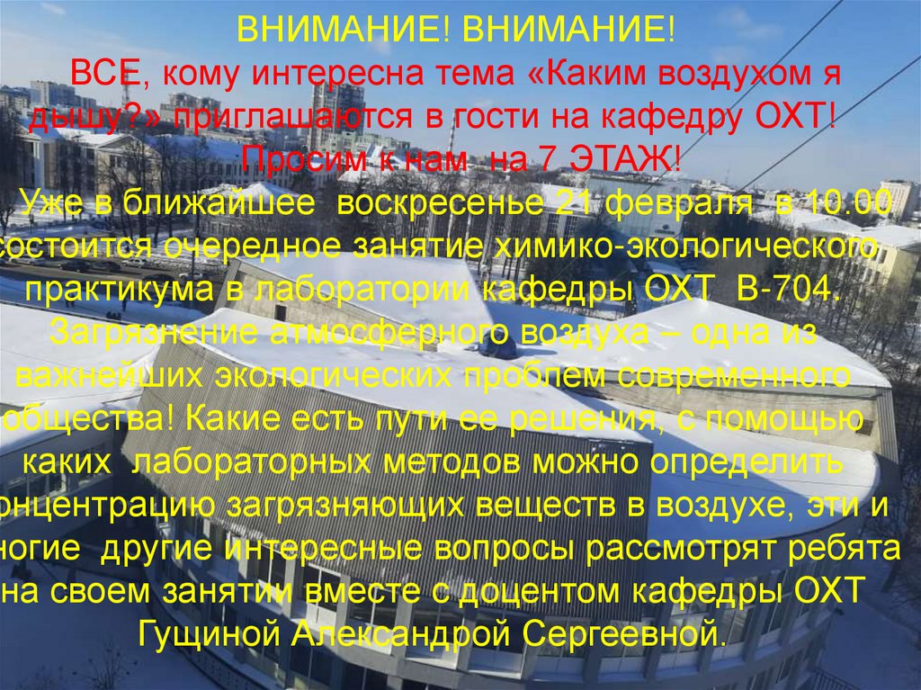 дышу?» приглашаются в гости на кафедру ОХТ!