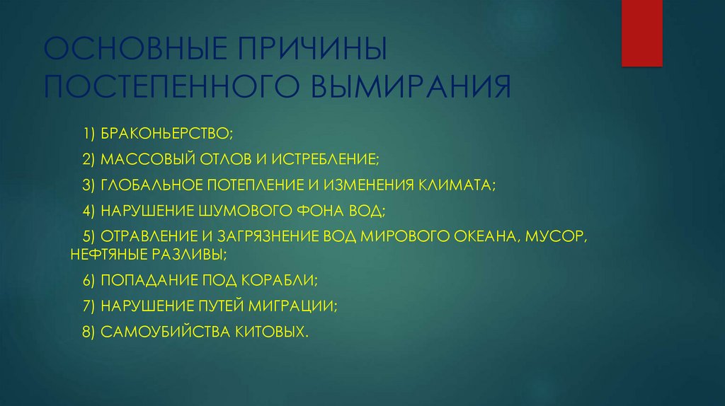 ОСНОВНЫЕ ПРИЧИНЫПОСТЕПЕННОГО ВЫМИРАНИЯ