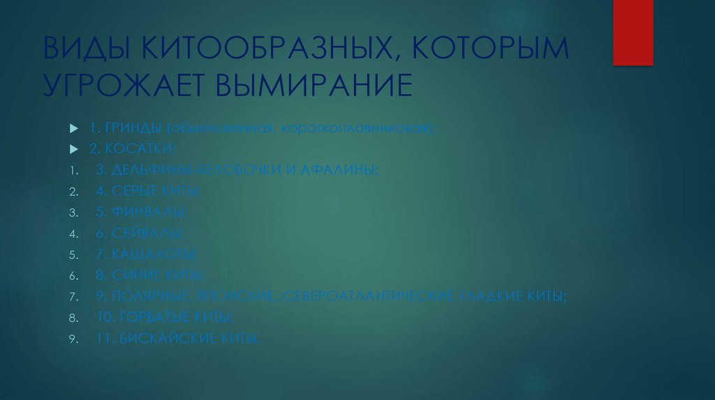 ВИДЫ КИТООБРАЗНЫХ, КОТОРЫМУГРОЖАЕТ ВЫМИРАНИЕ