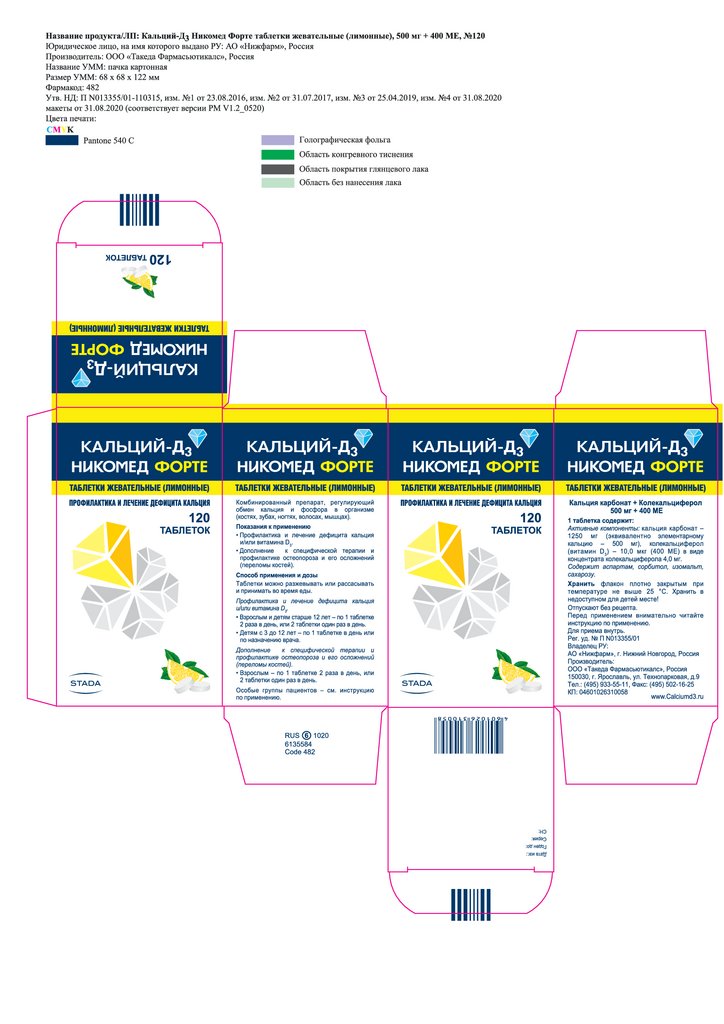 Кальций-Дз Никомед Форте таблетки жевательные (лимонные),