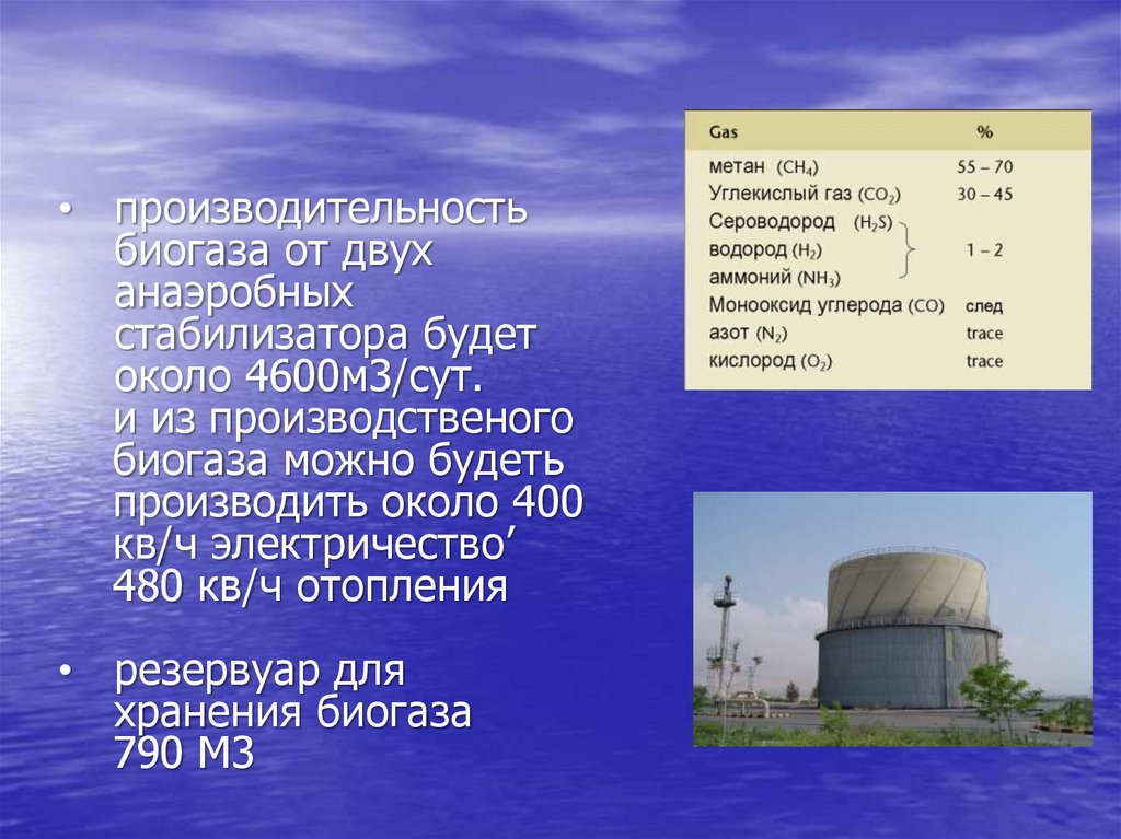 • производительностьбиогаза от двух