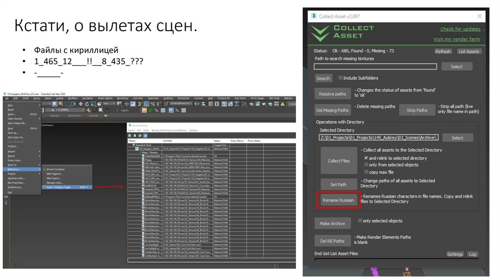 Кстати, о вылетах сцен.• Файлы с кириллицей