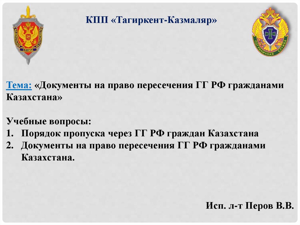 КПП «Тагиркент-Казмаляр»Тема: «Документы на право пересечения ГГ РФ гражданами