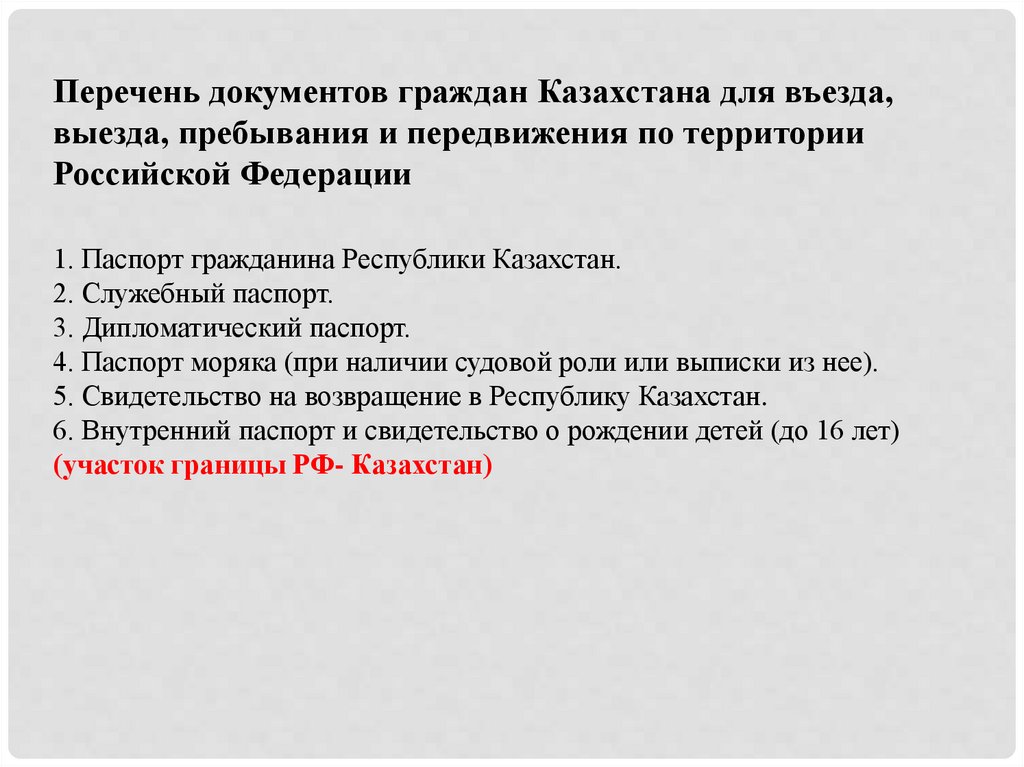 Перечень документов граждан Казахстана для въезда,выезда, пребывания и передвижения по территории