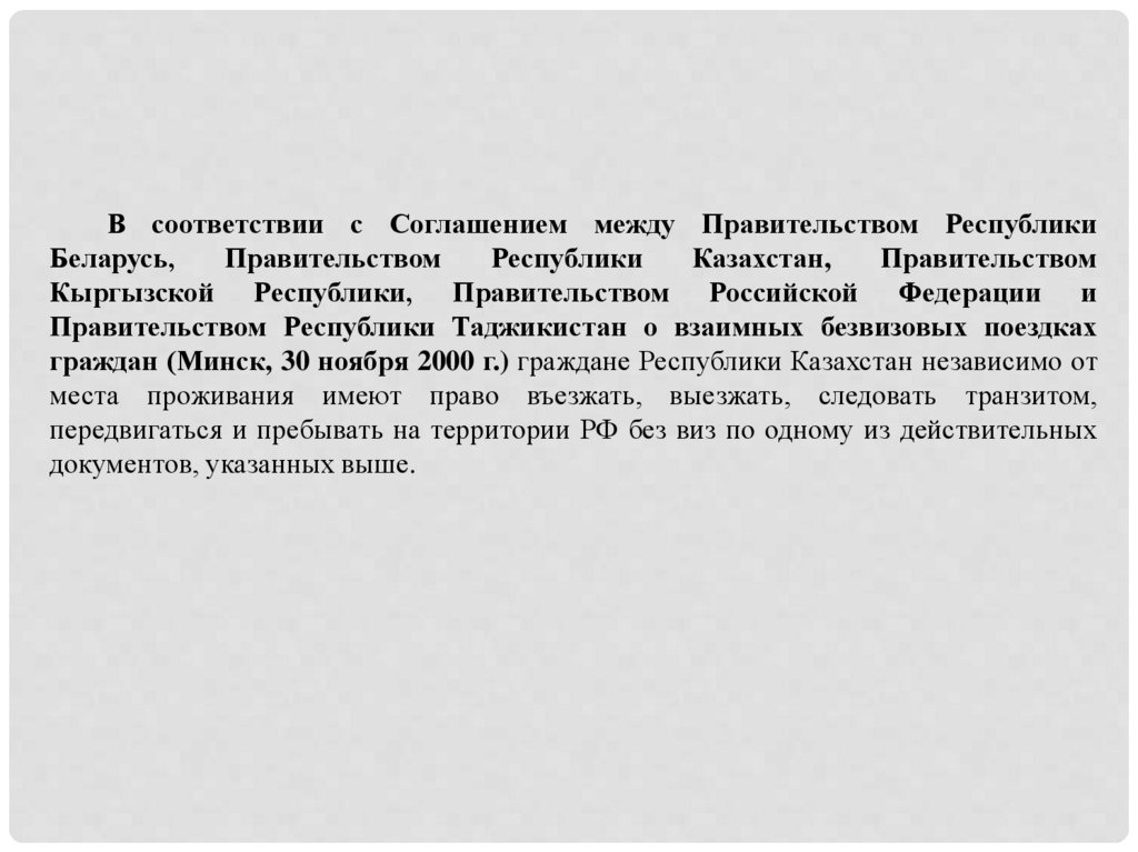 Документы на право пересечения ГГ РФ гражданами Казахстана