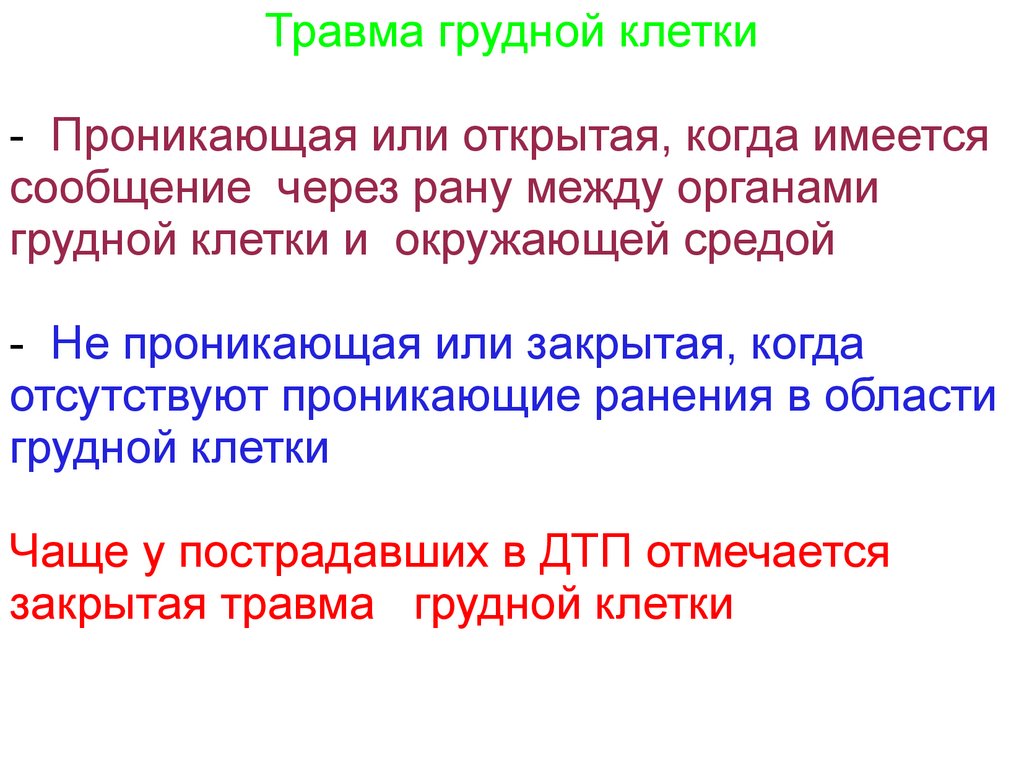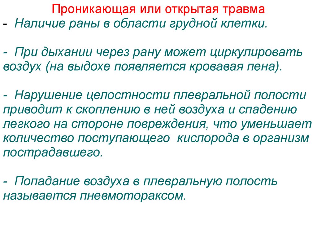 Травма грудной клетки- Проникающая или открытая, когда имеется