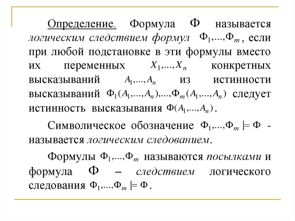 Символическое обозначение 1,..., m | называется логическим следованием.