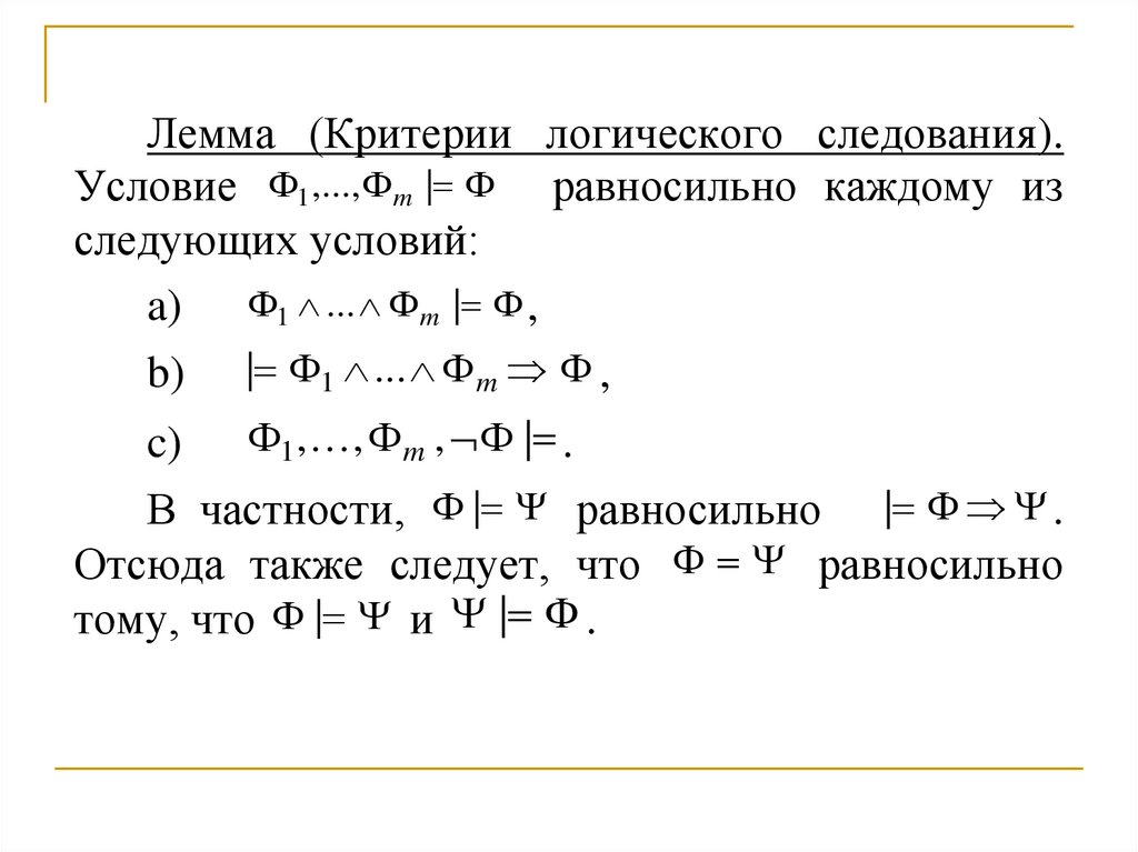 Лемма (Критерии логического следования).Условие 1,..., m | равносильно каждому из