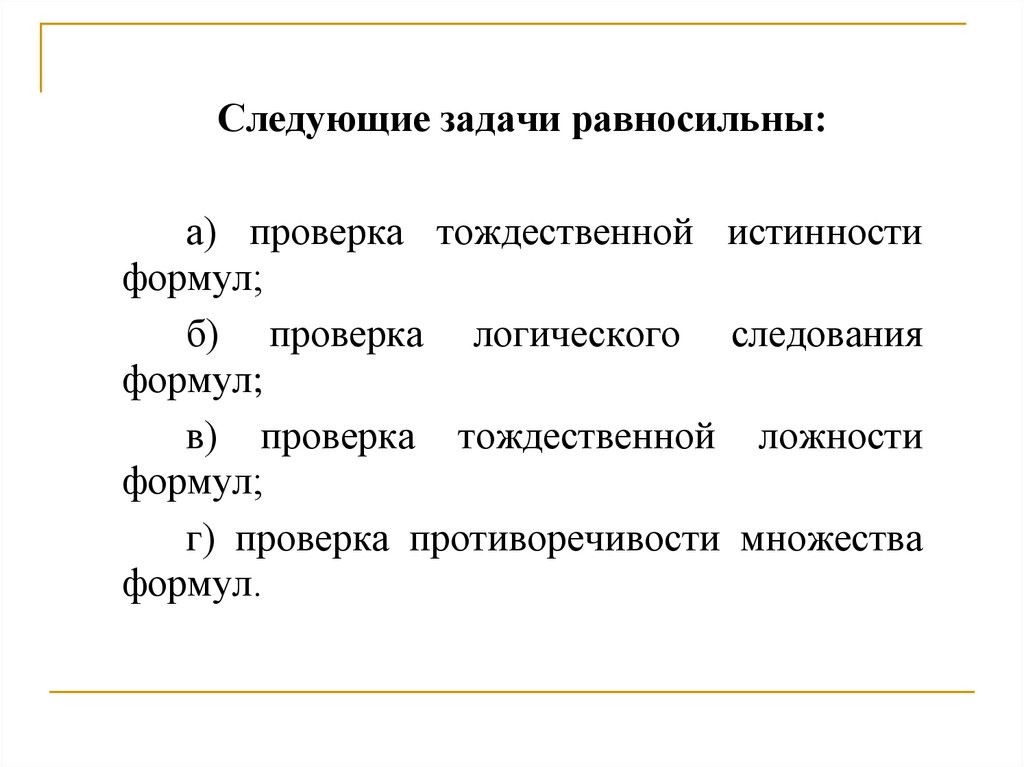 Следующие задачи равносильны:а) проверка тождественной истинности