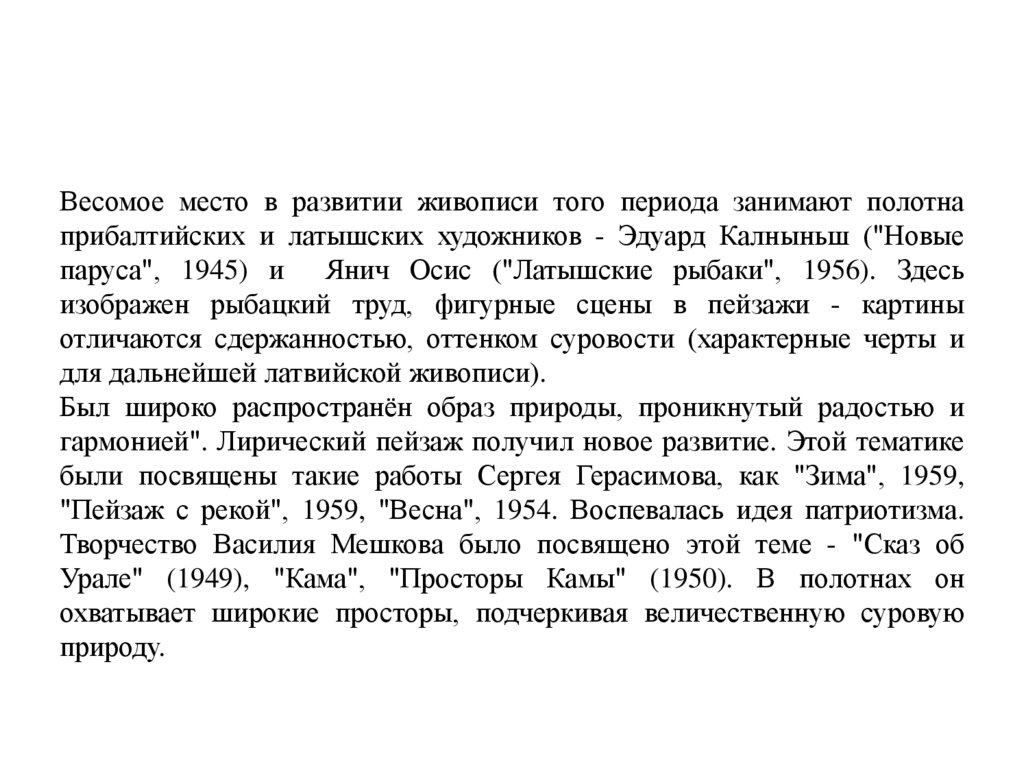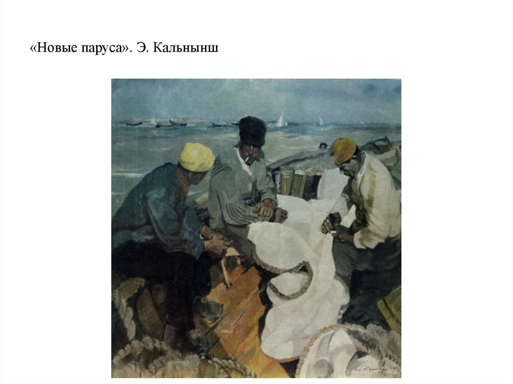 Весомое место в развитии живописи того периода занимают полотнаприбалтийских и латышских художников - Эдуард Калныньш ("Новые