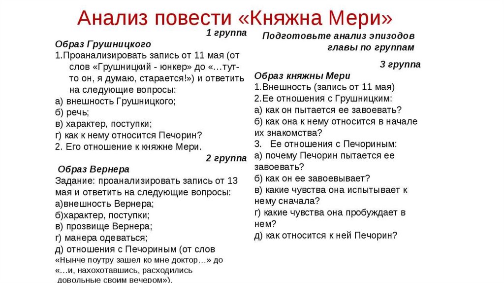 Вопросы по повести М.Ю. Лермонтова “Княжна Мери”