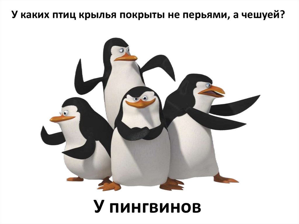 У каких птиц крылья покрыты не перьями, а чешуей?У пингвинов