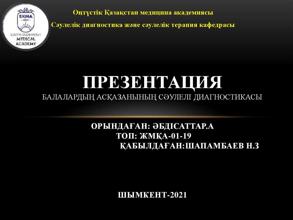 Оңтүстік Қазақстан медицина академиясыСәулелік диагностика және сәулелік терапия кафедрасы