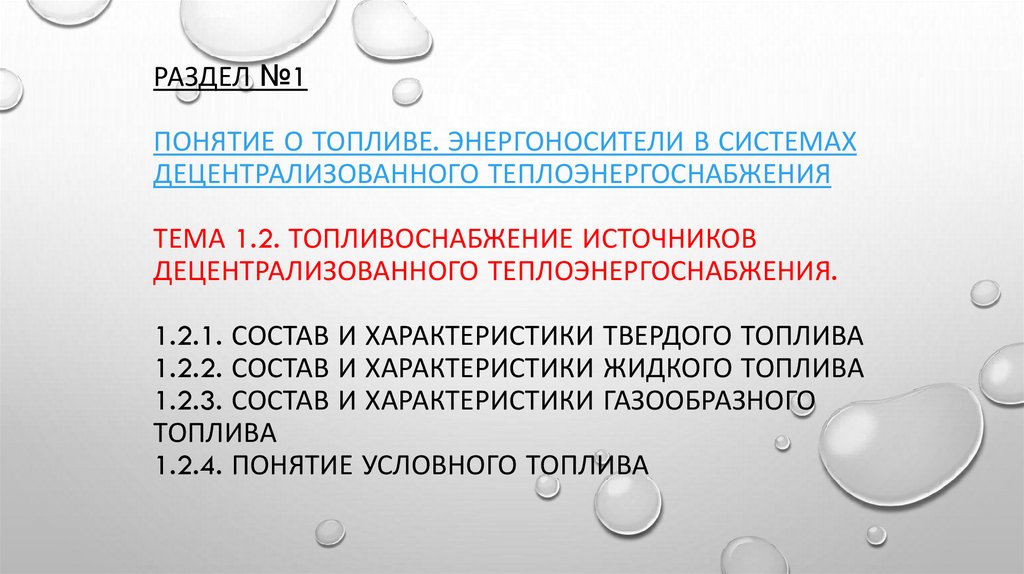 РАЗДЕЛ №1ПОНЯТИЕ О ТОПЛИВЕ. ЭНЕРГОНОСИТЕЛИ В СИСТЕМАХ