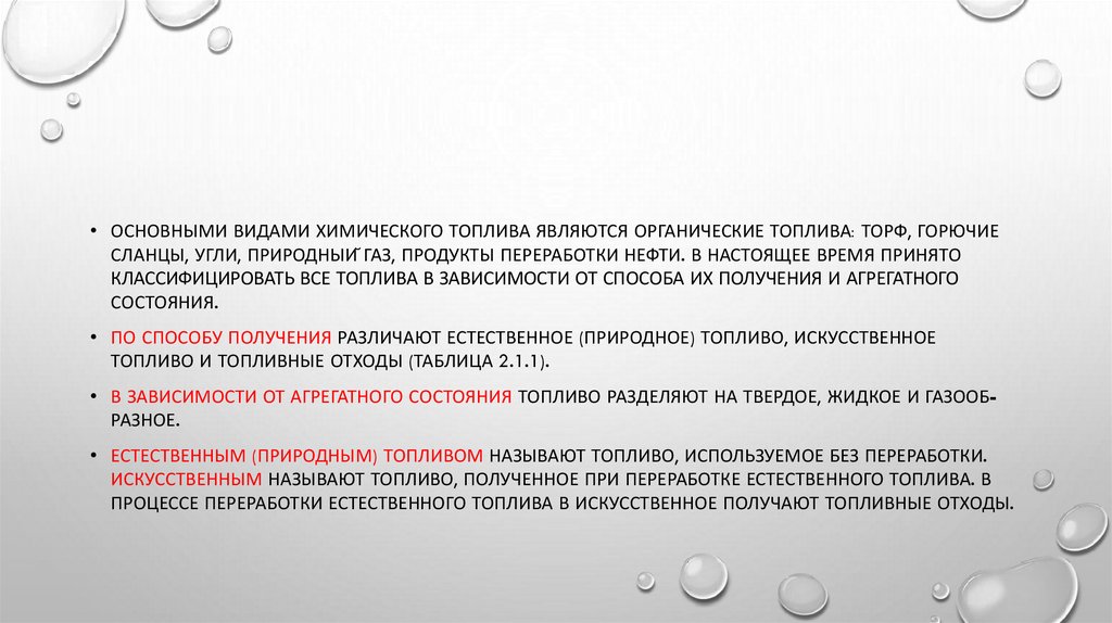 • ПО СПОСОБУ ПОЛУЧЕНИЯ РАЗЛИЧАЮТ ЕСТЕСТВЕННОЕ (ПРИРОДНОЕ) ТОПЛИВО, ИСКУССТВЕННОЕ