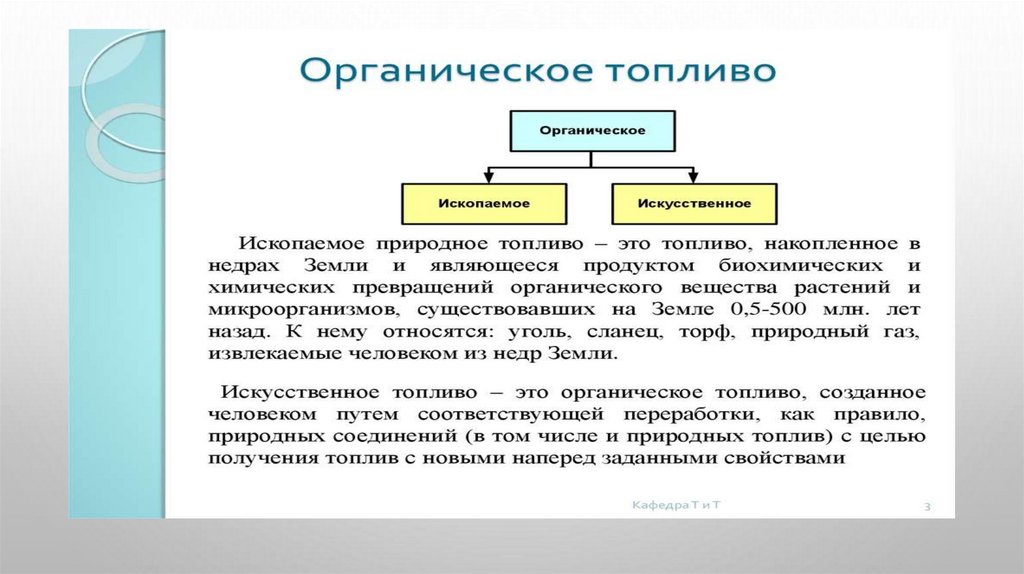 • ОСНОВНЫМИ ВИДАМИ ХИМИЧЕСКОГО ТОПЛИВА ЯВЛЯЮТСЯ ОРГАНИЧЕСКИЕ ТОПЛИВА: ТОРФ, ГОРЮЧИЕСЛАНЦЫ, УГЛИ, ПРИРОДНЫЙ ГАЗ, ПРОДУКТЫ ПЕРЕРАБОТКИ НЕФТИ. В НАСТОЯЩЕЕ ВРЕМЯ ПРИНЯТО