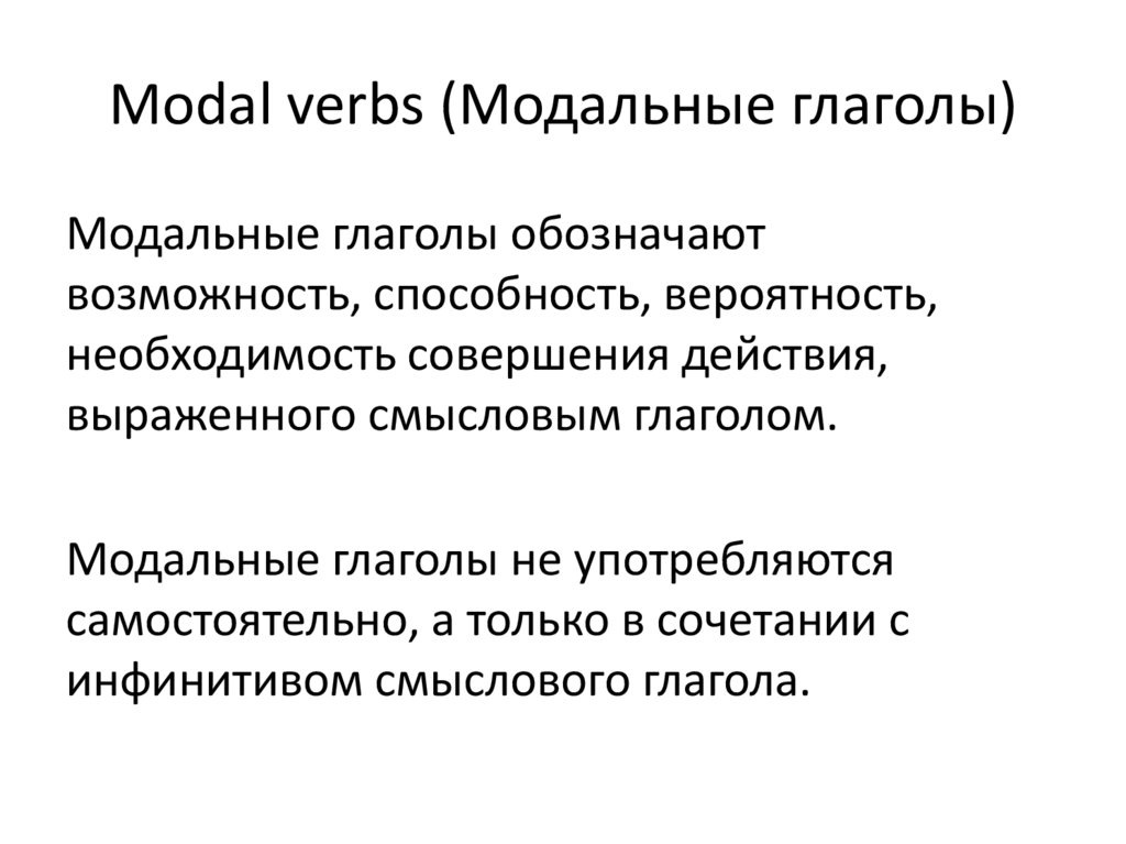 Modal verbs (Модальные глаголы)Модальные глаголы обозначают