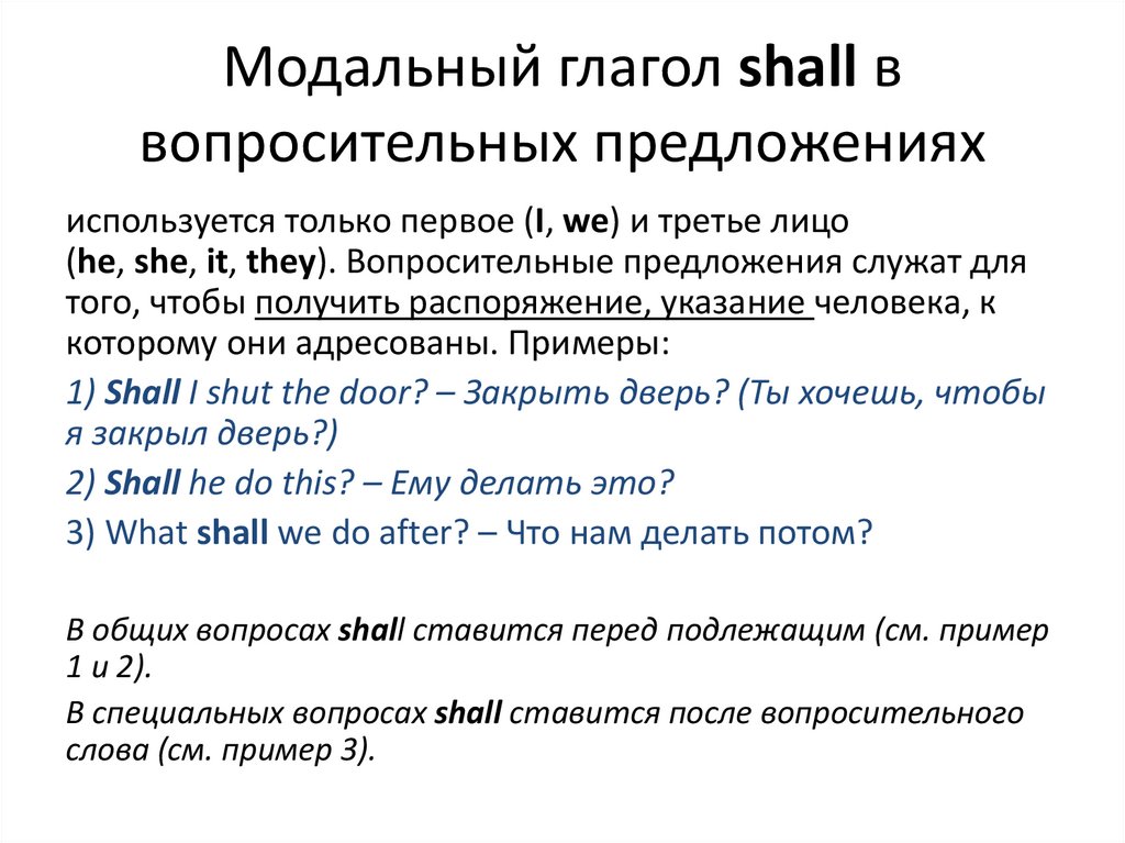 1) Shall I shut the door? – Закрыть дверь? (Ты хочешь, чтобы