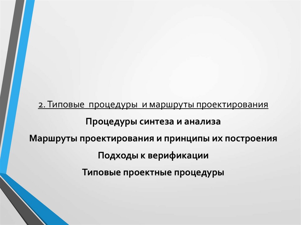2. Типовые процедуры и маршруты проектированияПроцедуры синтеза и анализа