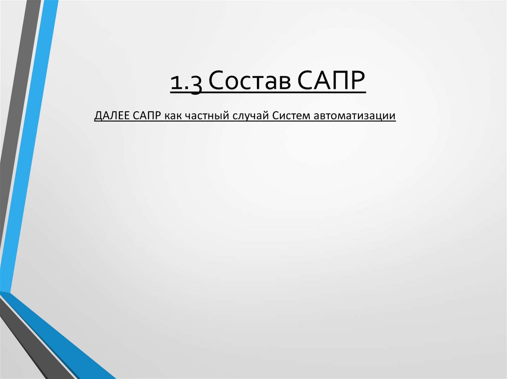 1.3 Состав САПРДАЛЕЕ САПР как частный случай Систем автоматизации