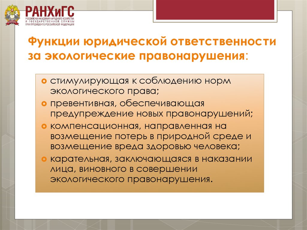 Понятие, сущность и функции юридической ответственности за экологические правонарушения