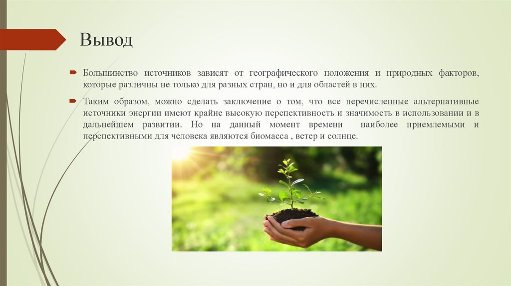 ВыводБольшинство источников зависят от географического положения и природных факторов,