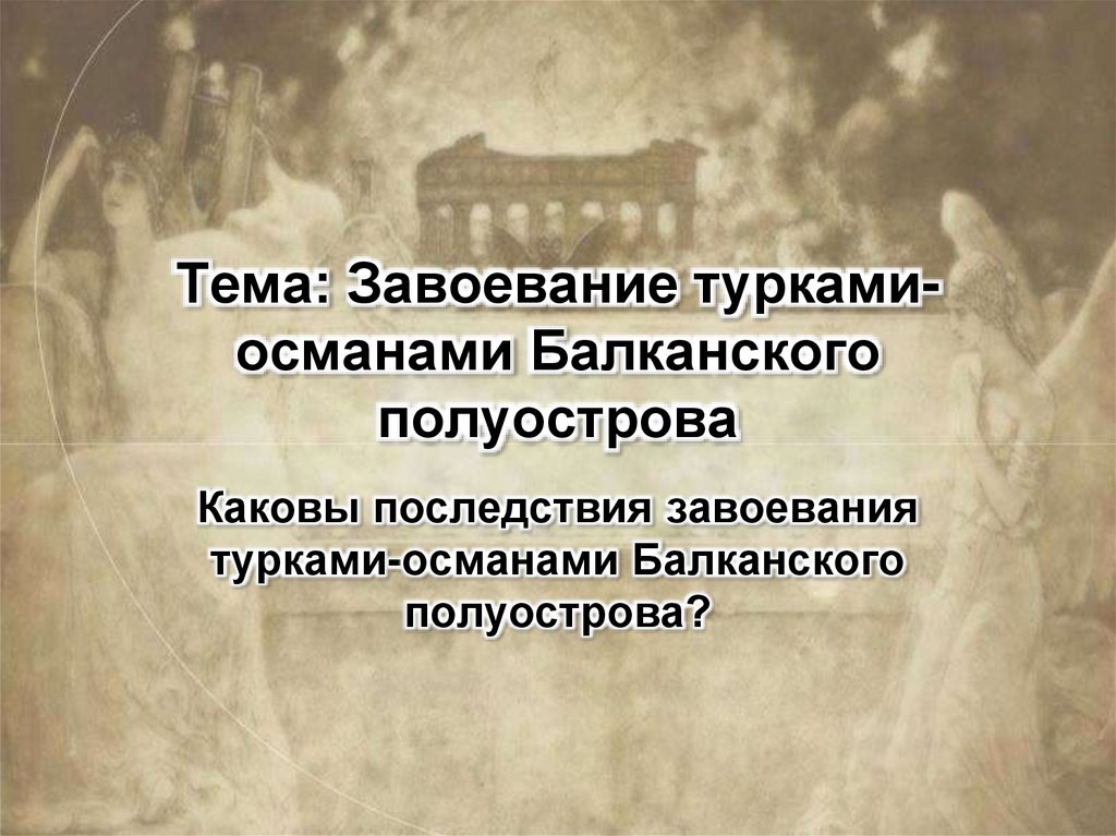 Тема: Завоевание туркамиосманами Балканскогополуострова
